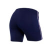Lycra I. E. San Vicente en tela franela Licrada azul turquí con franja lateral en color gris jaspeado.