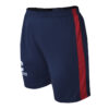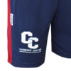 Pantaloneta I. E. Cárdenas Centro. Elaborada Chelsea azul turquí con franja lateral de color Vinotinto, logo de la institución estampado. Un bolsillo al lado derecho.