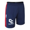 Pantaloneta I. E. Cárdenas Centro. Elaborada Chelsea azul turquí con franja lateral de color Vinotinto, logo de la institución estampado. Un bolsillo al lado derecho.