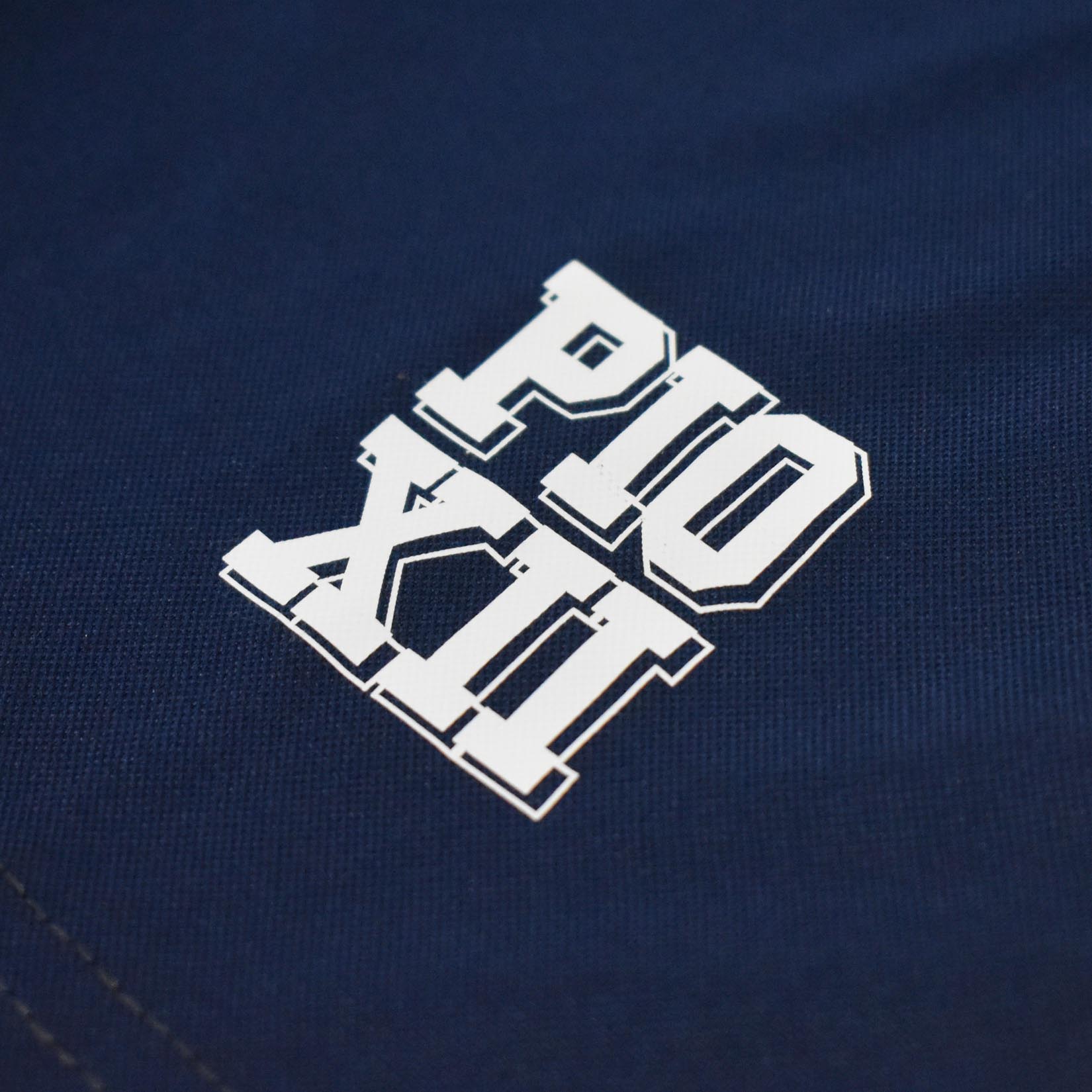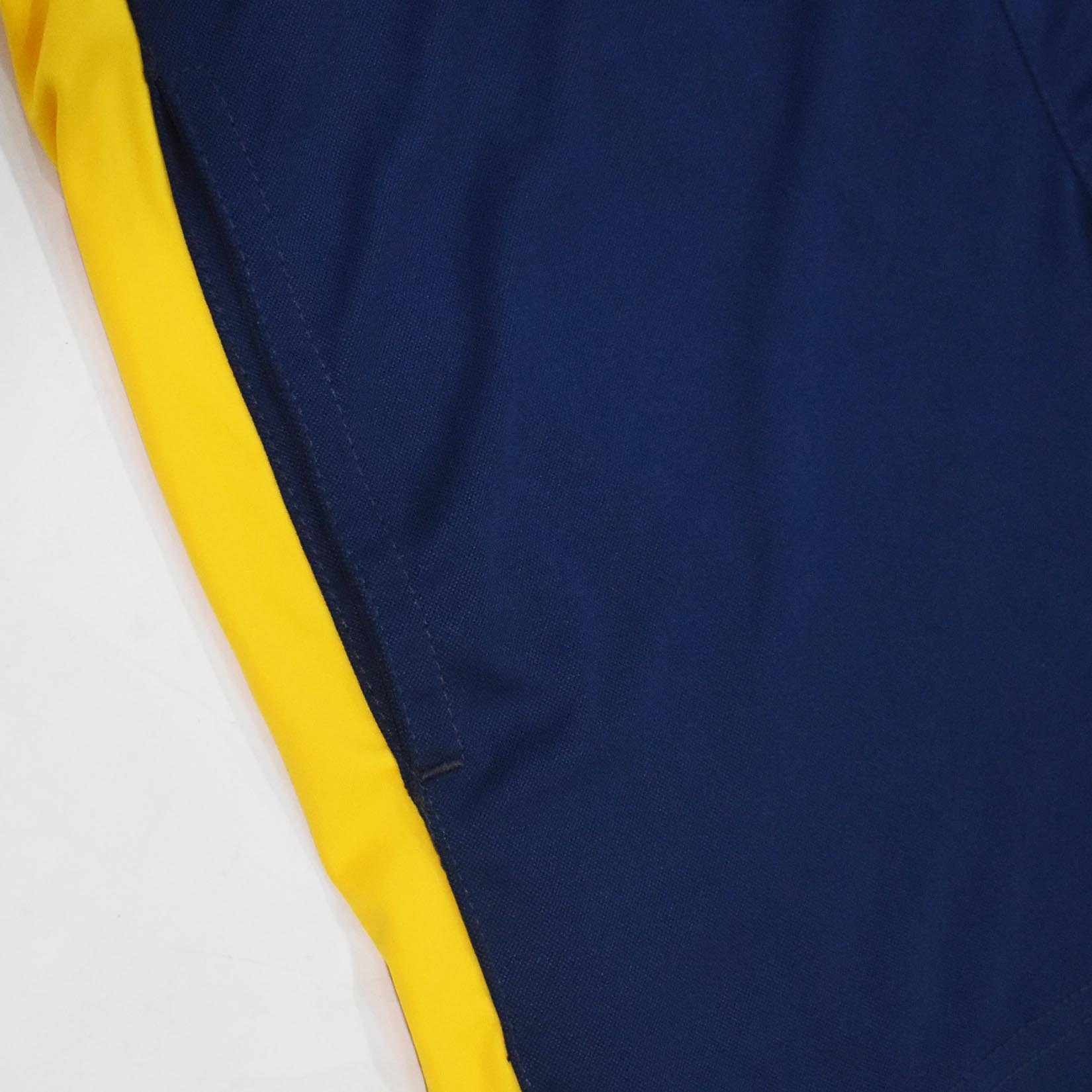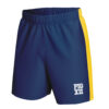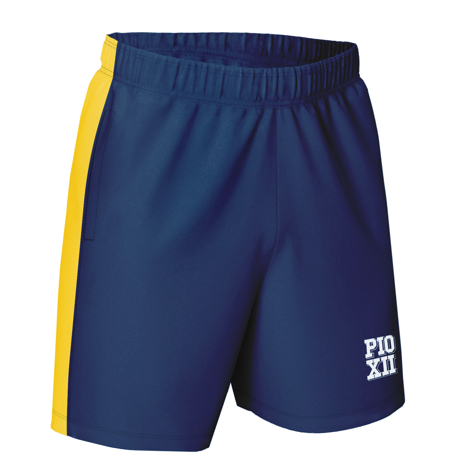 Pantaloneta Franciscano Pio XII, elaborada en tela  azul turquí con franjas laterales de color amarillo.