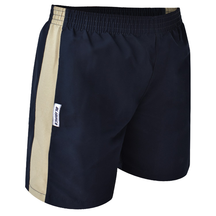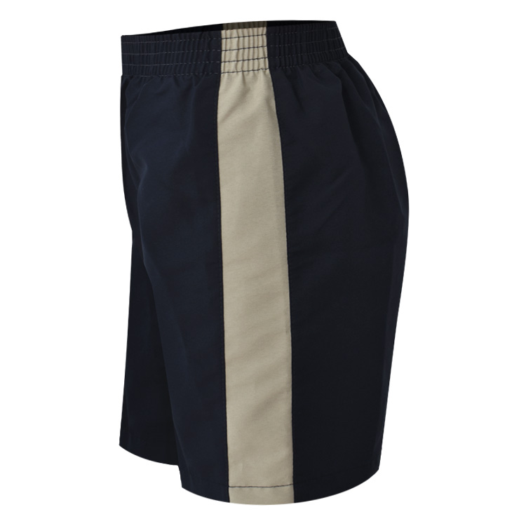 Pantaloneta Liceo Montessori, elaborada en tela antifluido azul turquí con franja lateral de color azul beige, bolsillo lateral.