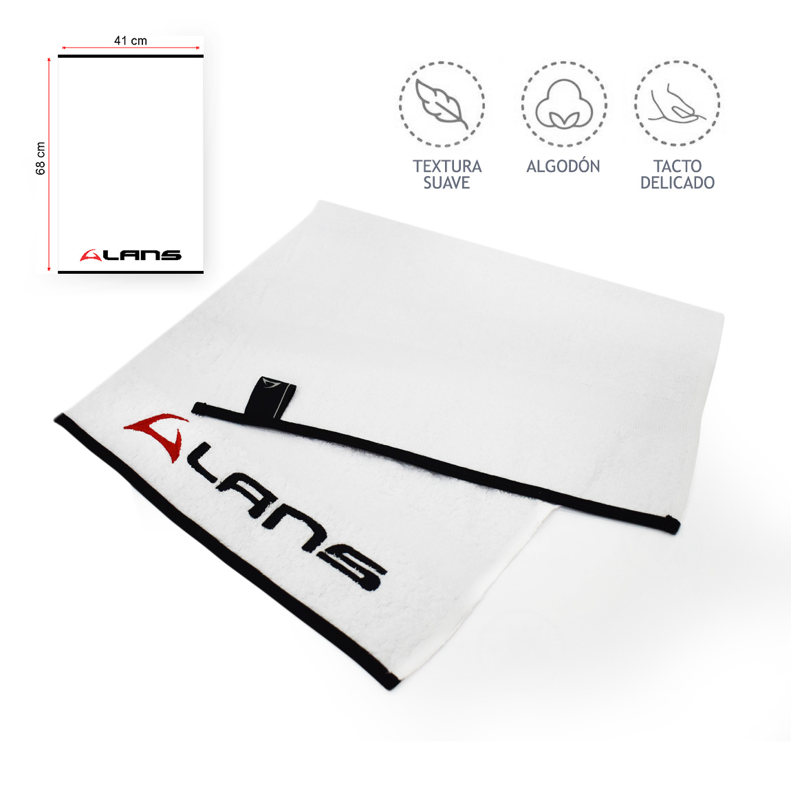 Toalla mediana lisa bordada, fabricada con Rizo 100% Algodón Peinado de alta calidad.